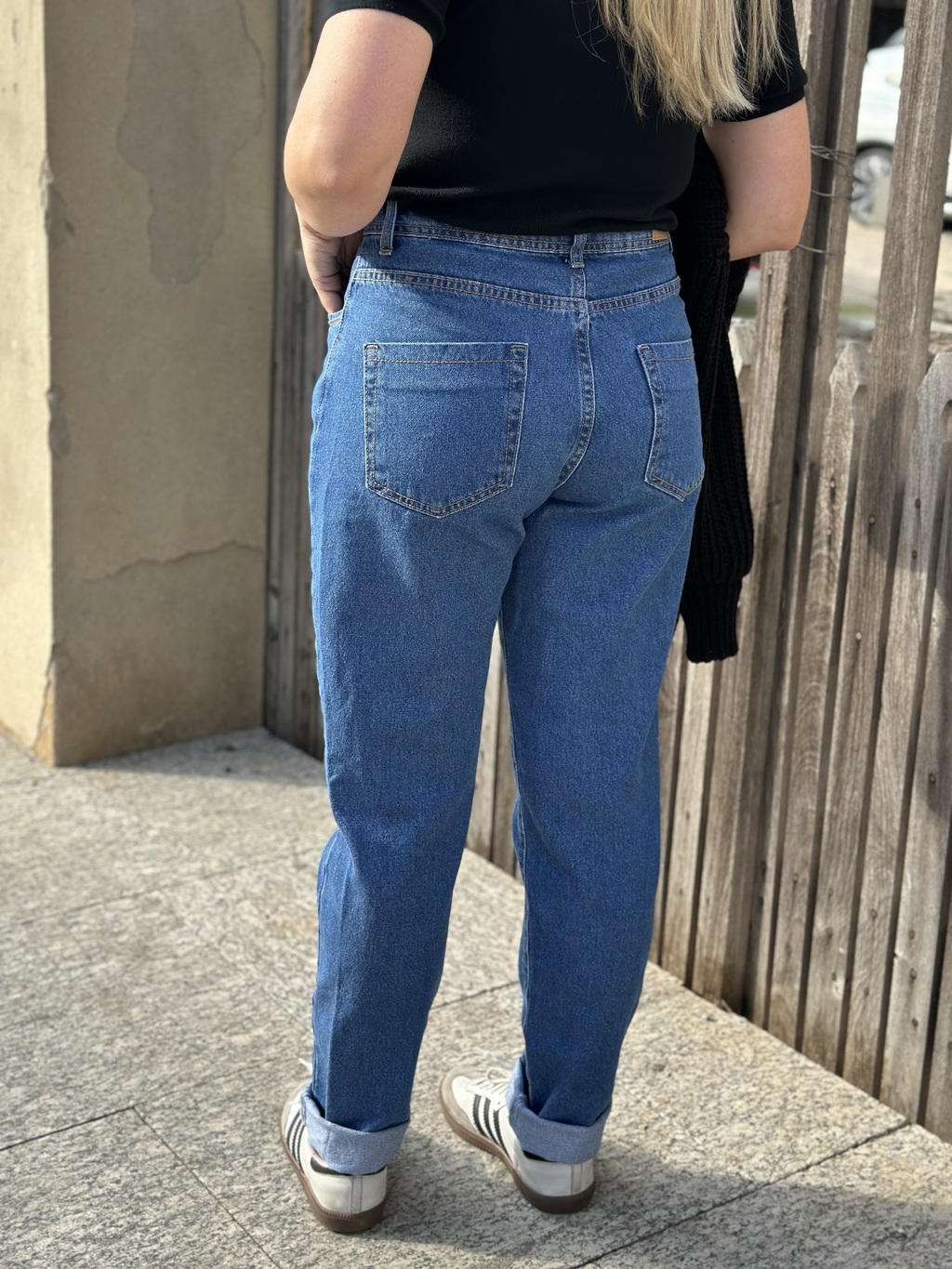 Calça jeans mom;