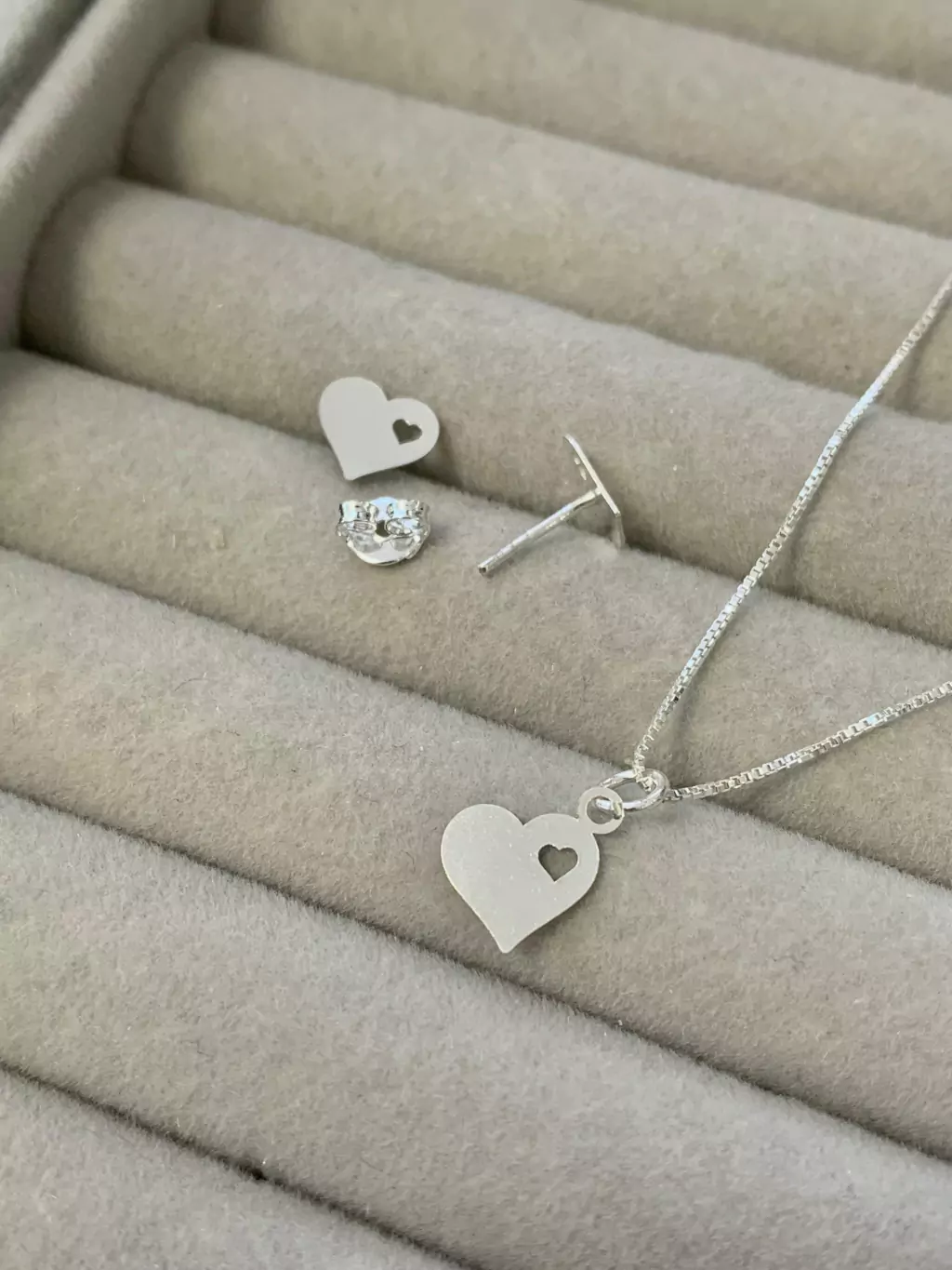 Conjunto colar e brinco em prata 925;